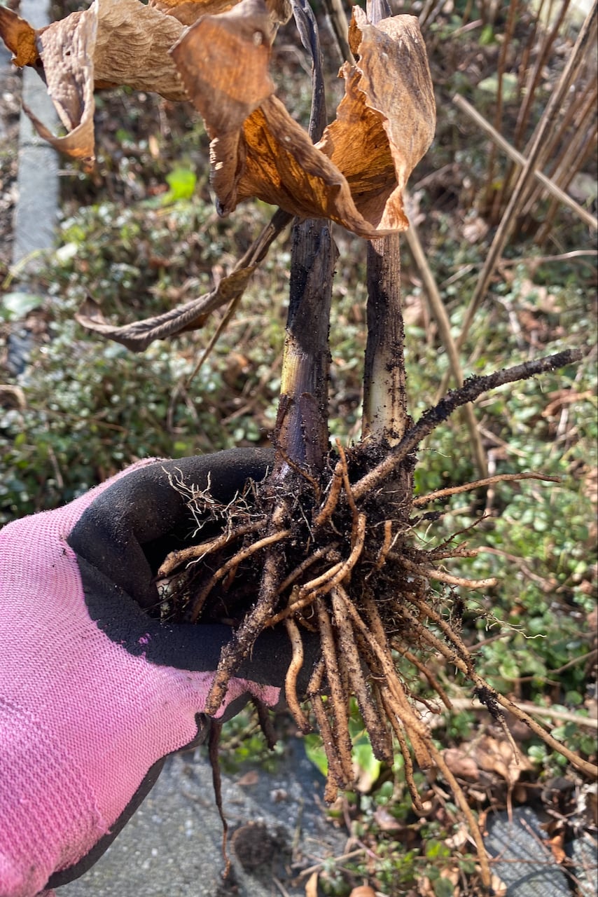 This means there’s a short window to divide hellebores and other such ephemeral plants. We want to catch them right after they’ve bloomed, but before they recede underground. Be warned that hellebores grow deep roots, so they might require a bit of extra effort to dig out.