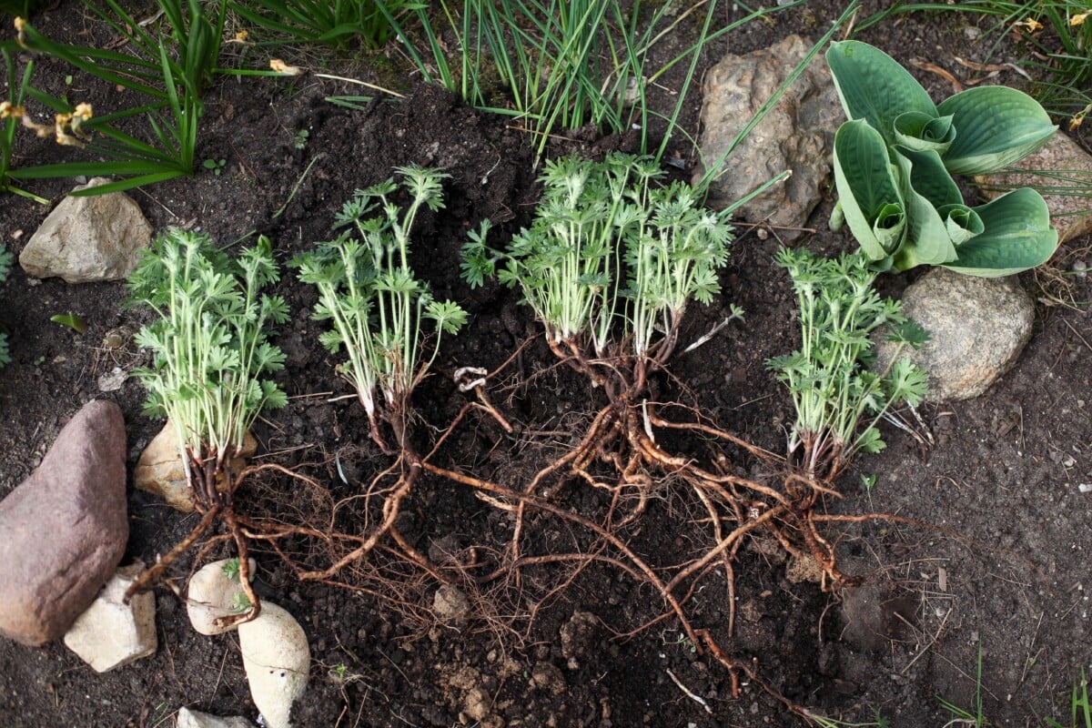 We can easily divide Japanese anemones as long as they’re a mature clump. Because we’re not actually dividing the tap root itself (impossible and foolish), but the ‘bouquet’ of tap roots that have clumped together.