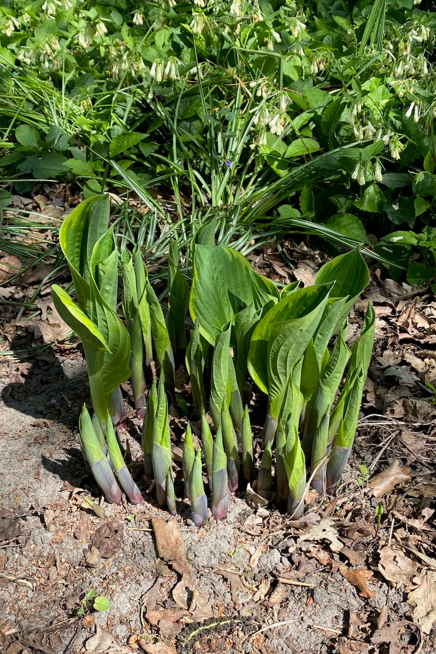 The nice thing about hostas is that we may not need to dig everything out. Often, they’ll kind of tell you where there’s a new section growing off the main plant. You’ll see a shy small plantlet a few inches apart from the mother-plant.