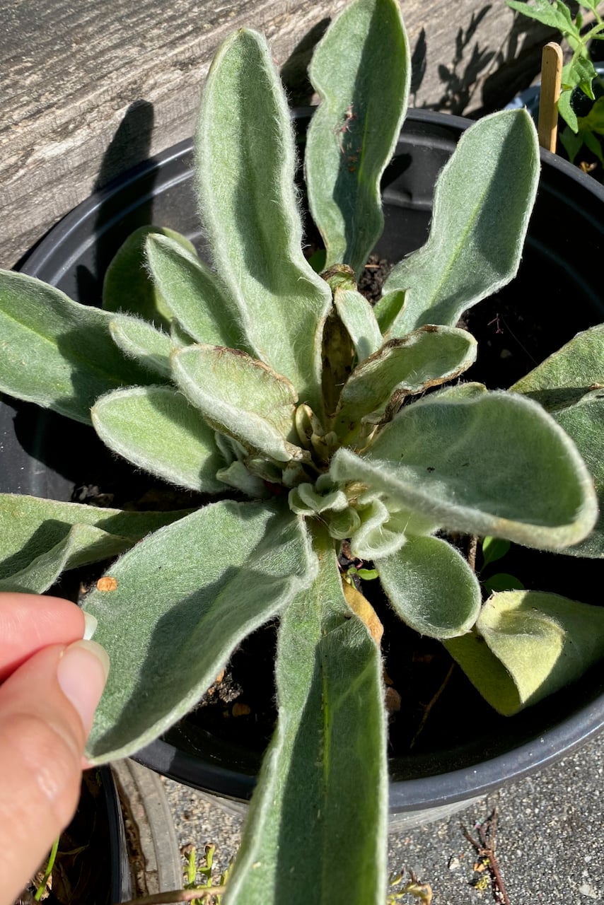 An established verbena will start growing its own ‘pups’ all around the base. All we have to do is dig one out, lift it and relocate it.