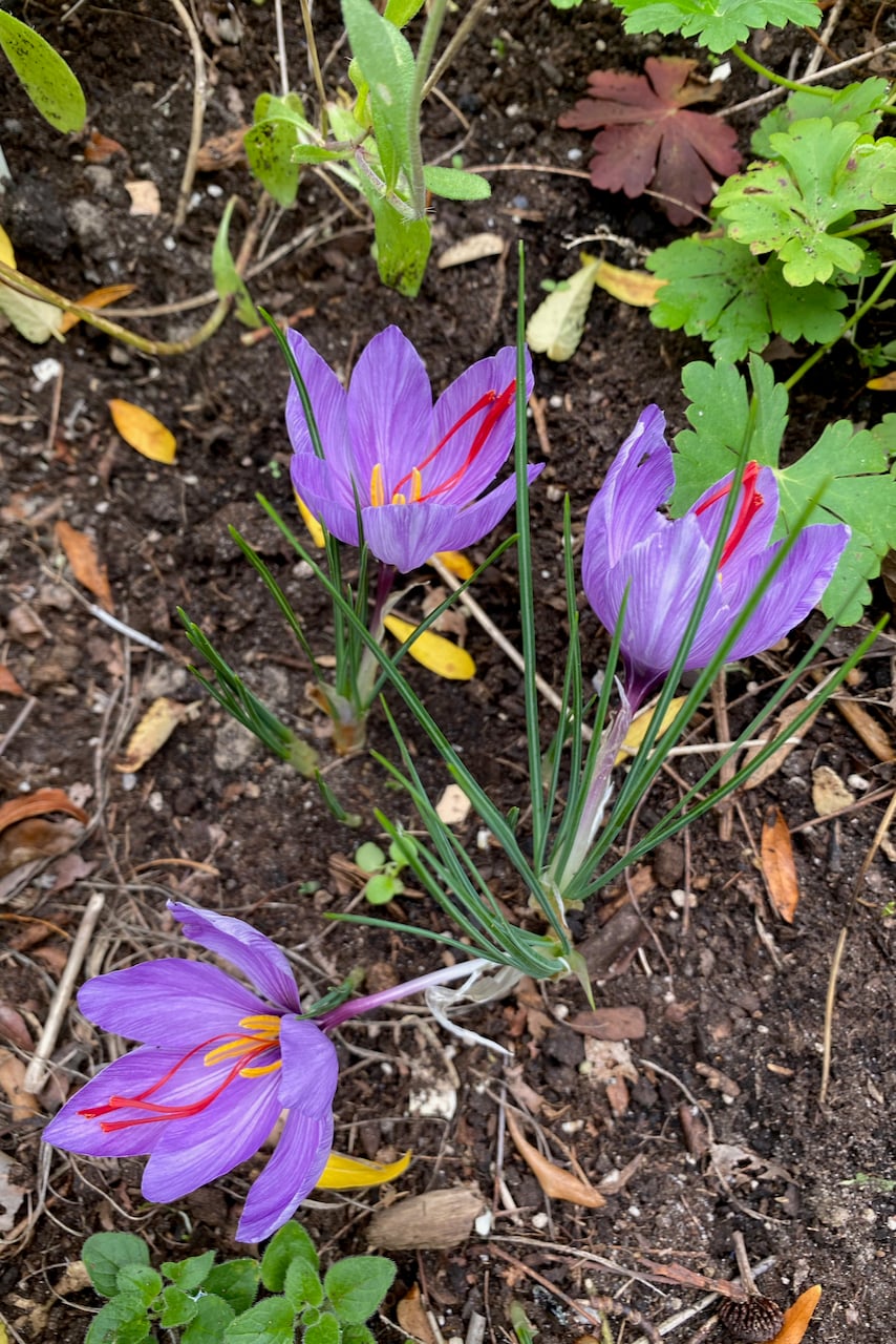 Here’s what the saffron bulbs look like when they’re in bloom (in October and November).