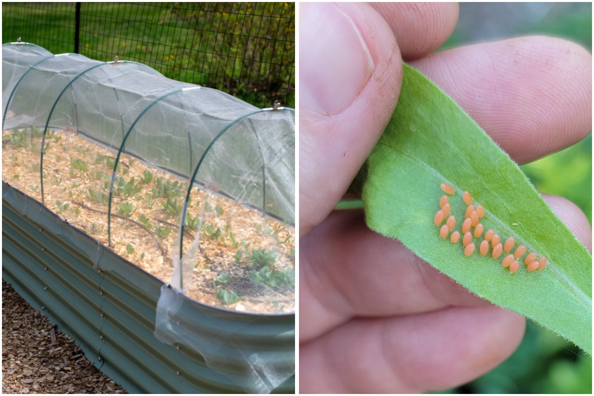 Cover your beds as early as possible, shortly after seeds germinate or transplanting. Once you begin seeing white butterflies flitting around, it’s usually too late.