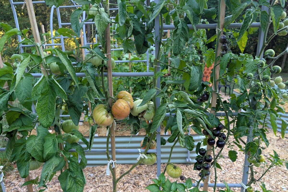 I highly encourage folks to top their tomatoes in September. This encourages your plants to put their energy into ripening and stops their campaign of total garden domination. There are some other good reasons for topping your tomatoes this time of year. (You can read about them and how to do it here.)