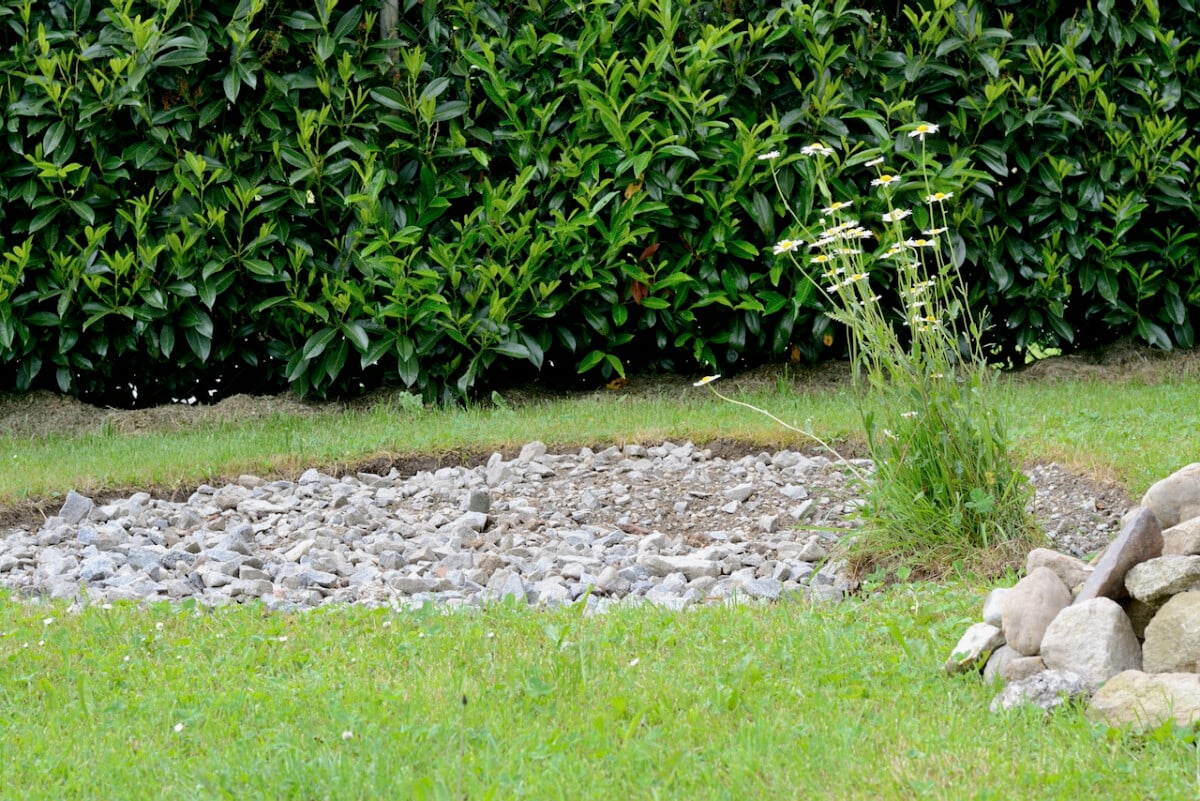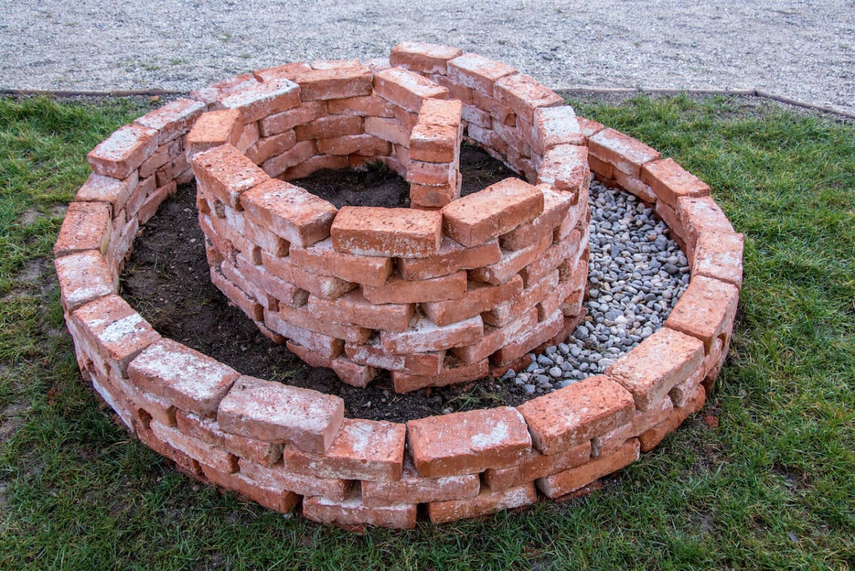 Remember that this is a permanent structure in which you’ll be adding a large amount of soil (by volume) on a small footprint. This means the spiral needs to drain well, all the way down into the ground.