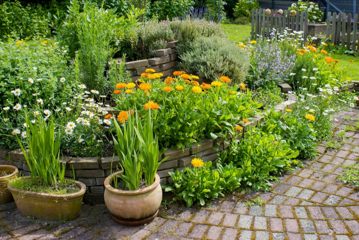 Flowers: stick to annuals that don’t spread too much, such as calendula and cosmos.